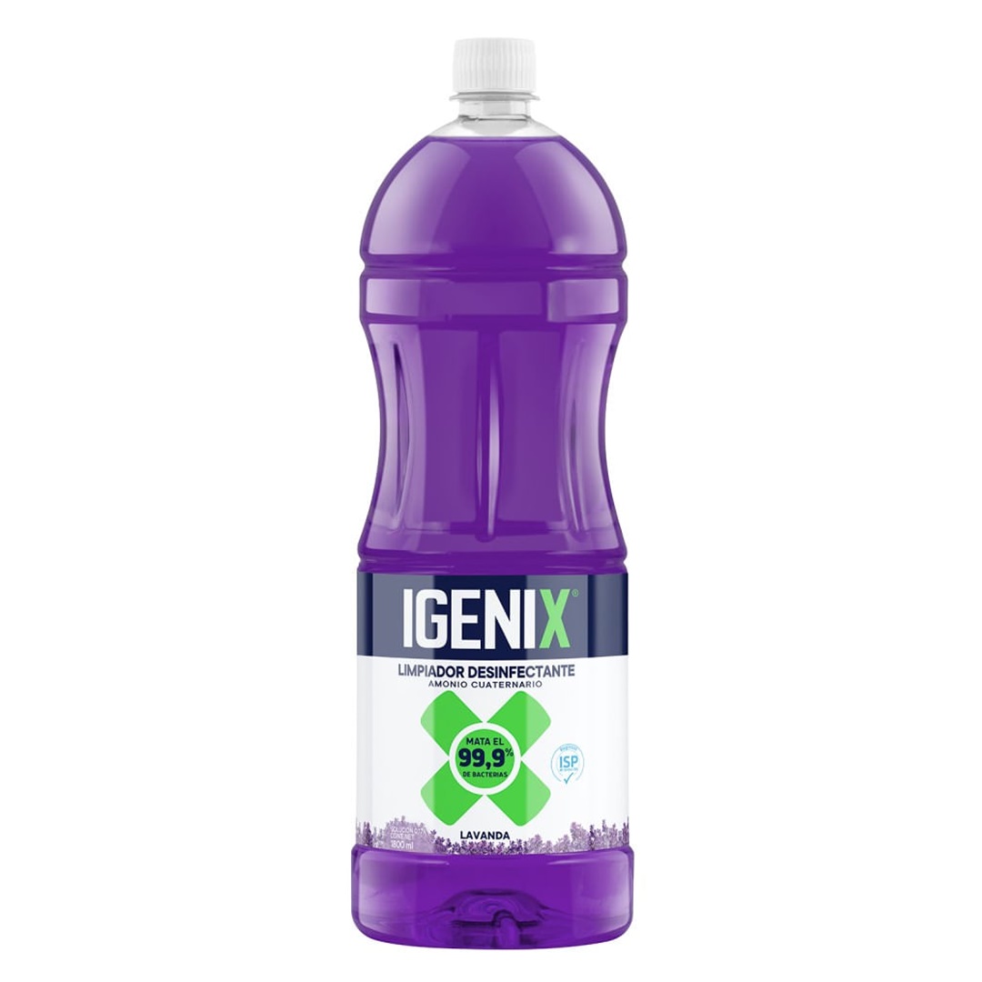 Limpiador Desinfinfectante Igenix Frescura floral 1800ml Igenix Limpiador Desinfectante Para Pisos limpia, aromatiza y desinfecta tu hogar, matando el 99,9% de bacterias de tus pisos.
