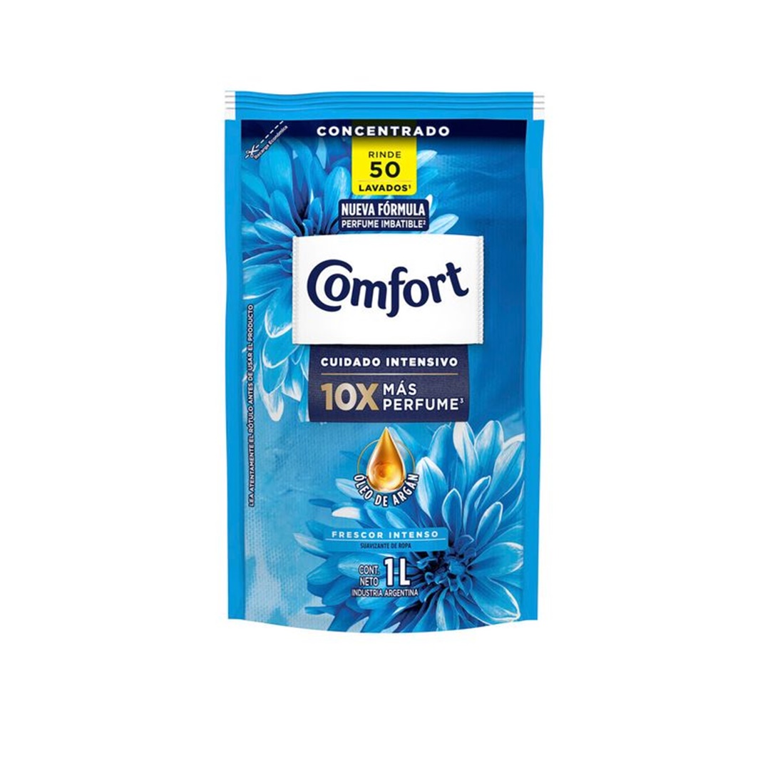 El Suavizante Concentrado Comfort Cuidado Esencial tiene 10 veces más perfume y hace que tu ropa dure mucho más. Su nueva fórmula contiene aceite de argán (un aceite natural con alto potencial nutritivo) que previene los daños causados por el lavado, manteniendo los colores de las telas vibrantes por más tiempo y la ropa muy perfumada